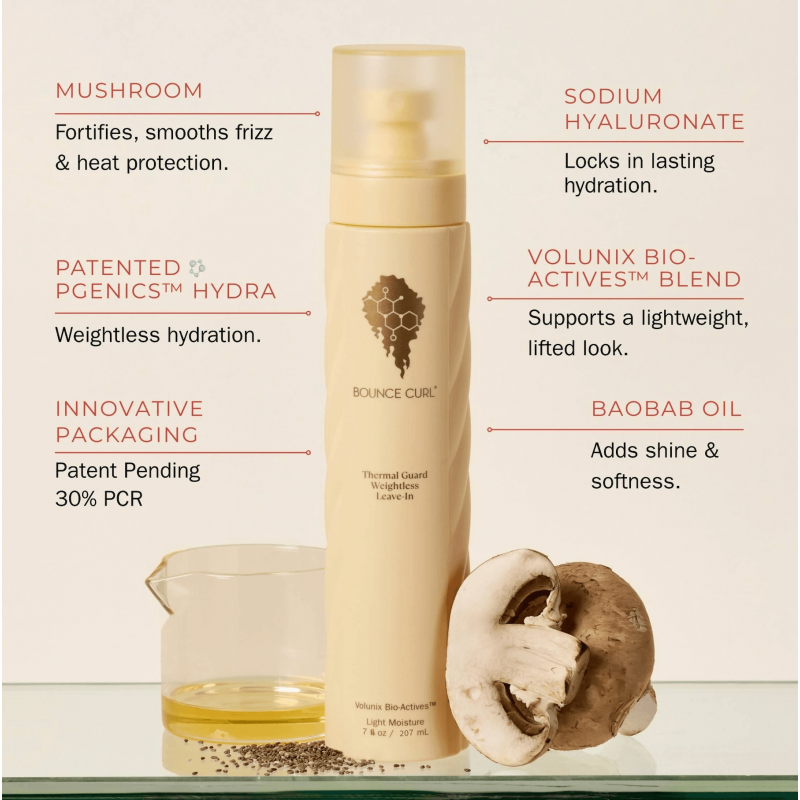 Le Thermal Guard Weightless Leave-In de Bounce Curl est un soin sans rinçage multifonction conçu pour hydrater, démêler et protéger les cheveux de la chaleur jusqu’à 230 °C (450 °F).